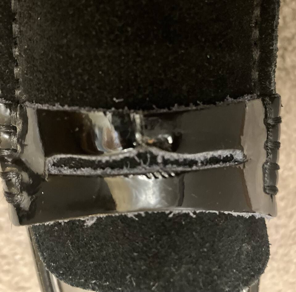 The shoes are well made and in Very Good Condition but there is some staining on the insoles. Also, part of the patent leather strap on the left shoe tore and was repaired. (See pics.)