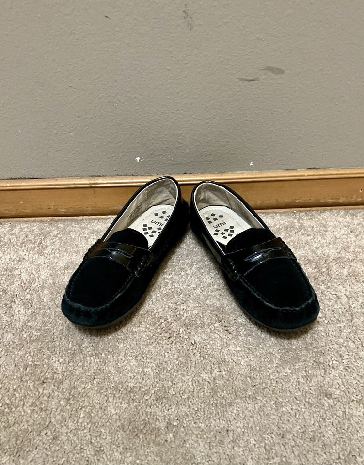 Umi Moire Suede and Patent Leather Girls Loafers, Black - Size 31 (US 13) (GUC)