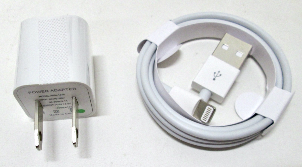 New in the Box for iPhone 3ft. 8 Pin Charging Cable W/Travel Home Wall Charger. Works with all Apple devices with an 8 pin lightning charging port. Includes 1 amp wall charger and 3ft. cable. Sold with free shipping.