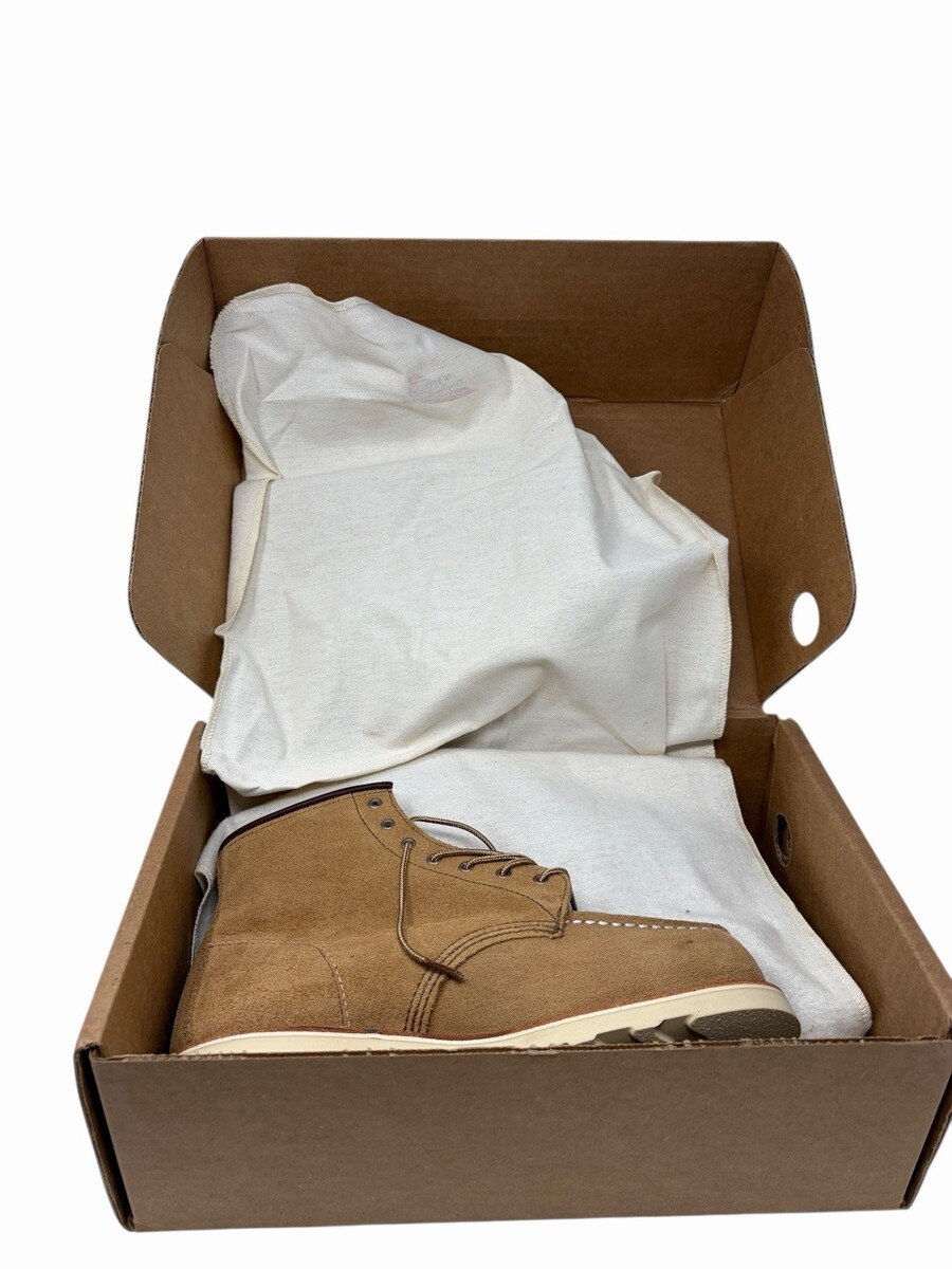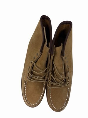 Elevate your footwear collection with the iconic Red Wing Women's 6-Inch Classic Moc. Originally designed for heavy labor, this boot has transitioned into a timeless fashion staple known for its durability and distinct silhouette. This specific pair is crafted from Hawthorne Muleskinner leather, a premium roughout leather that is specifically designed to look better as it ages and wears, offering a rugged, sand-colored aesthetic.
