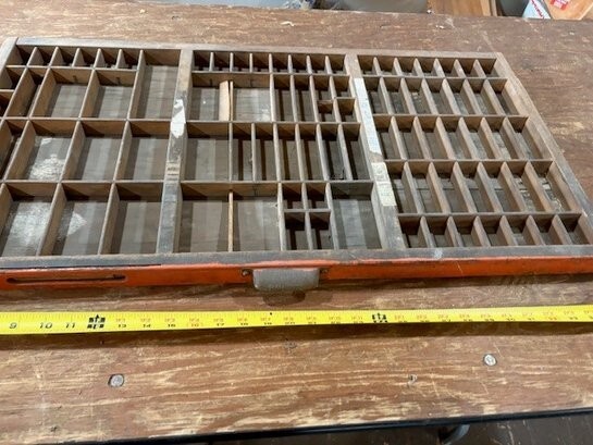 Vintage Wooden Printers Tray Letterpress Drawer 32" x 16-1/2” X 1-1/4”