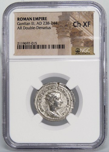 GORDIAN III/Liberalitas Cornucopia. NGC Certified Choice XF Double Denarius Coin