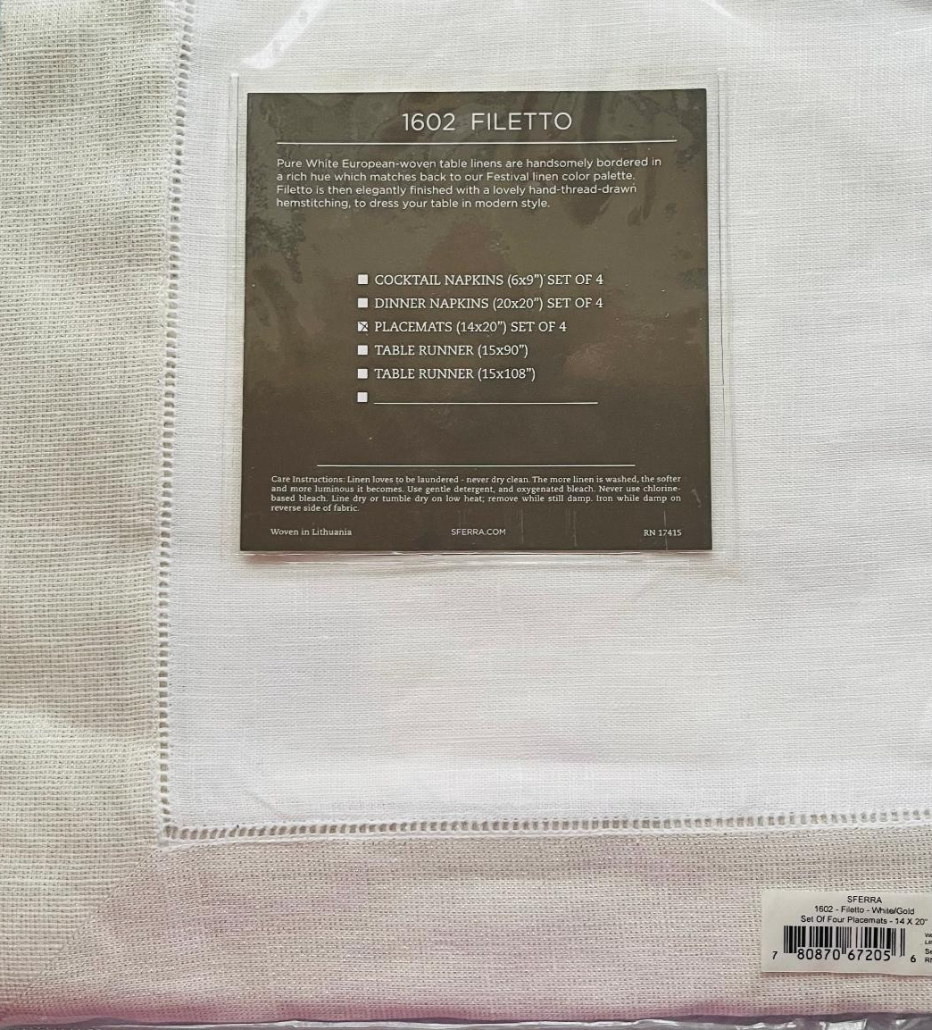 Sferra Filetto 100% Linen Placemats White w/Sparkly Gold Border 14x20"/SET/4 New