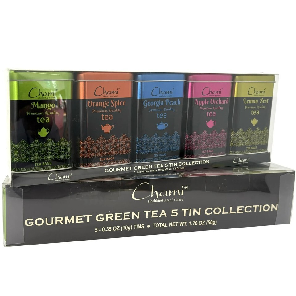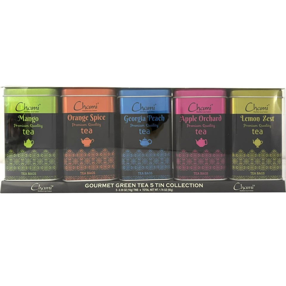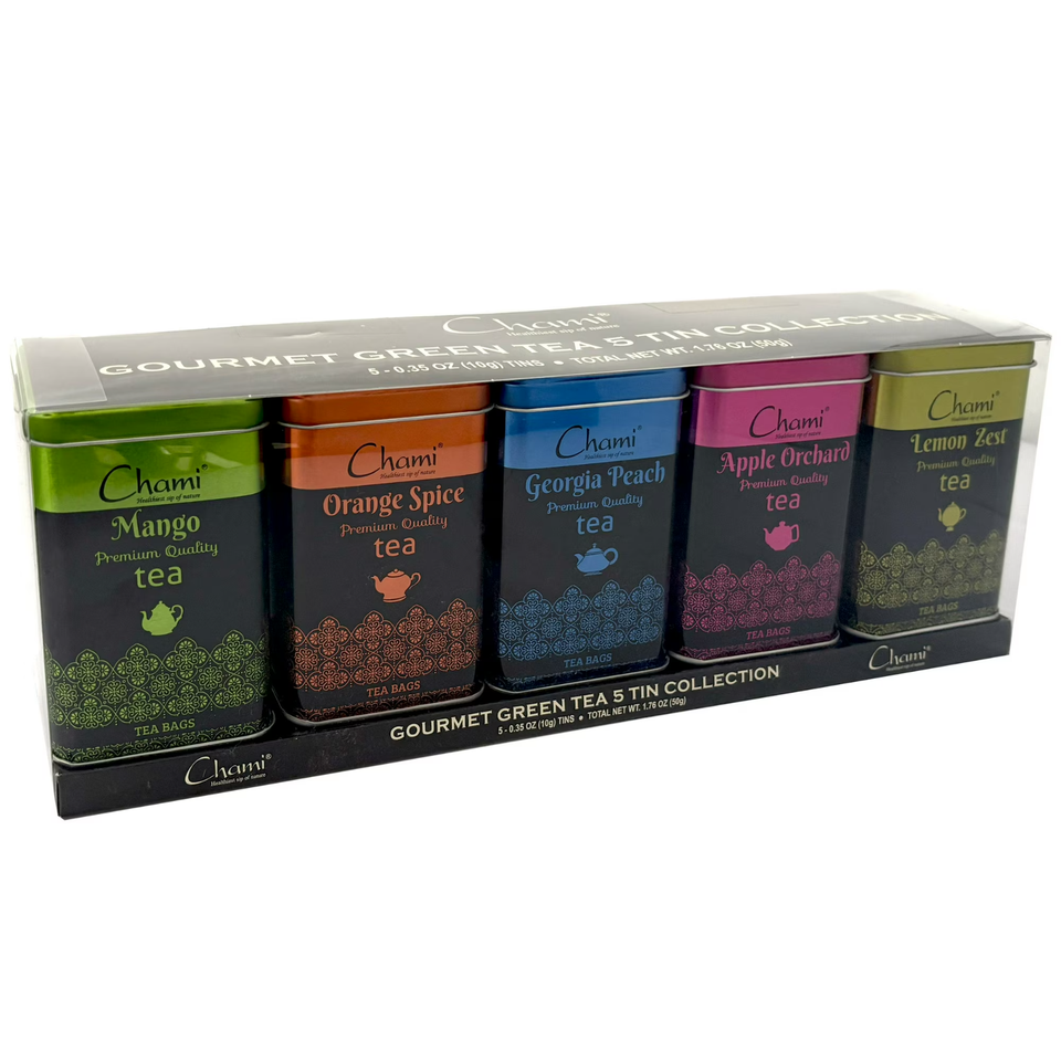 Chami Holiday Gourmet Green Tea 5 Tin Exotic Gift Set, 1.76oz, 50 Count