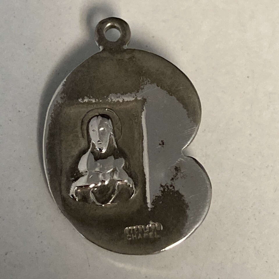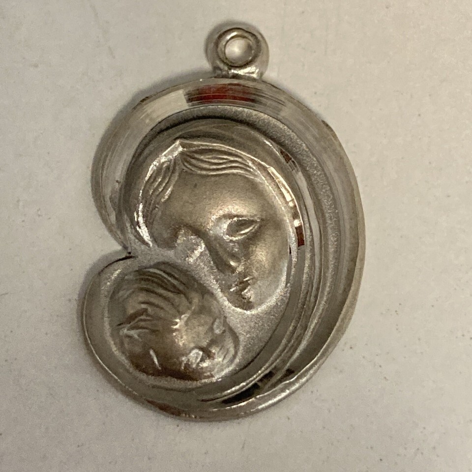 Made by Chapel out of sterling silver, this small pendant or charm is Mary Jesus/Child and is roughly the size of a US dime coin.