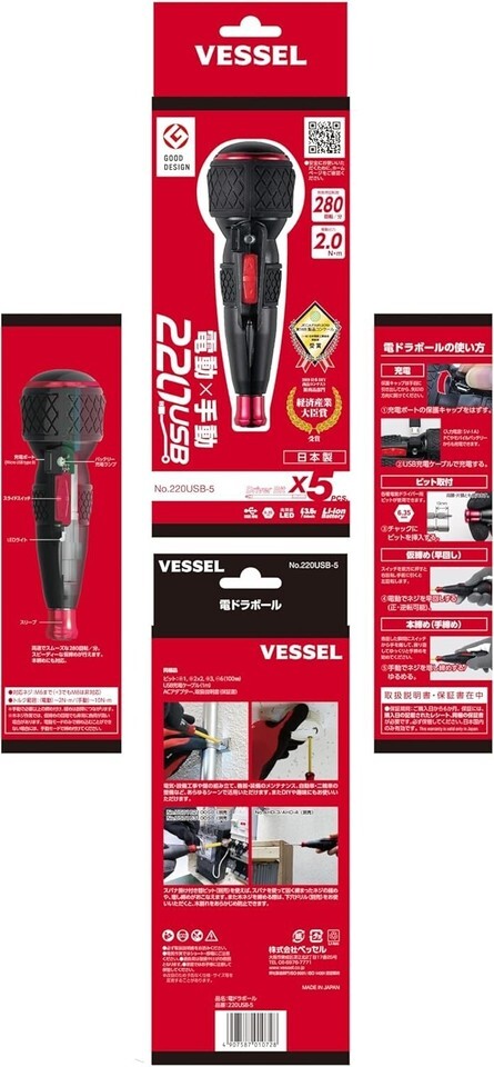 VESSEL Electrodra Ball No.220USB-5 with 5 bits, USB charging cable ,AC adapter