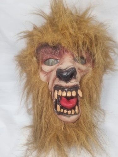 This blonde werewolf mask will make you stand out from the pack on Halloween night! Lightweight, comfortable and easy to wear, this realistic werewolf mask is made from molded plastic and covered in plush blonde fur. The blonde fur is a unique take on the traditional werewolf costume. The detailed wolf face is gray with beady yellow eyes, snarling nose and growling mouth with sharp fangs. The mouth opens when you open yours, and their area adjustable foam inserts for a snug fit in the jaw area. Self-activated sounds like snarling, growling, and howling are produced with a push button that you hold in your hand (a cord runs down your sleeve). Great effect!