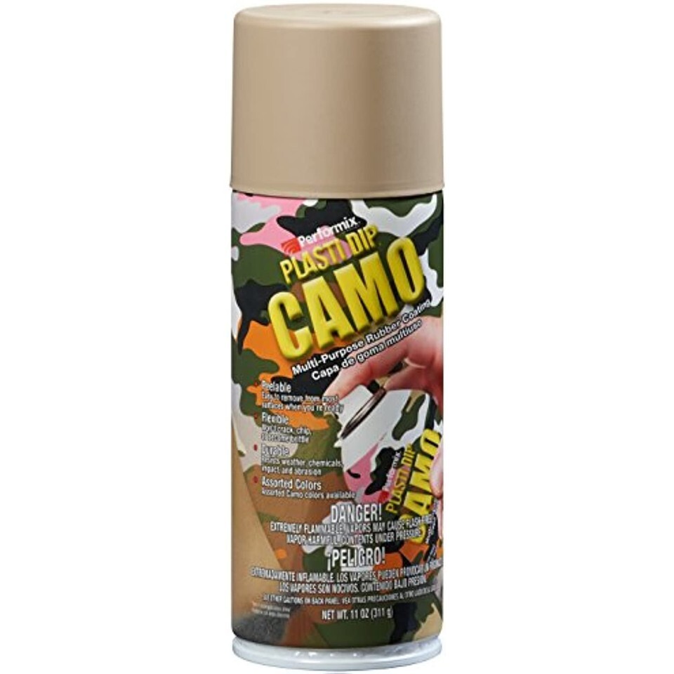 Product Description Plasti Dip Spray Camo is a special collection of Plastic Dip colors designed to match the many shades of nature. Keep your hunting and fishing gear, camping equipment, and other outdoor gear inconspicuous when you?re in the wild. From the Manufacturer Plastic Dip Camo is a special collection of Plastic Dip colors designed to match the many shades of nature. Keep your hunting and fishing gear, camping equipment, and other outdoor gear inconspicuous when you?re in the wild.