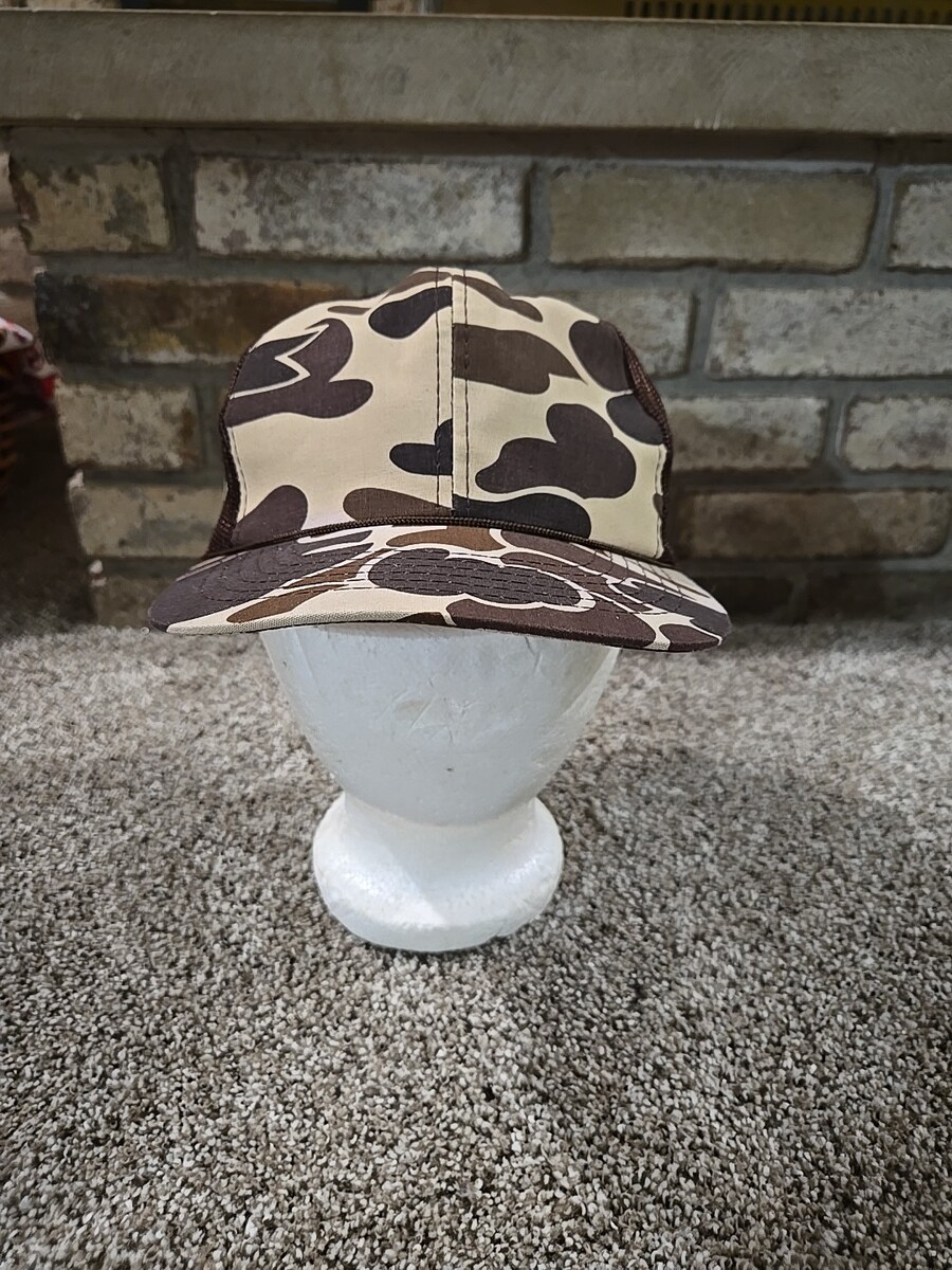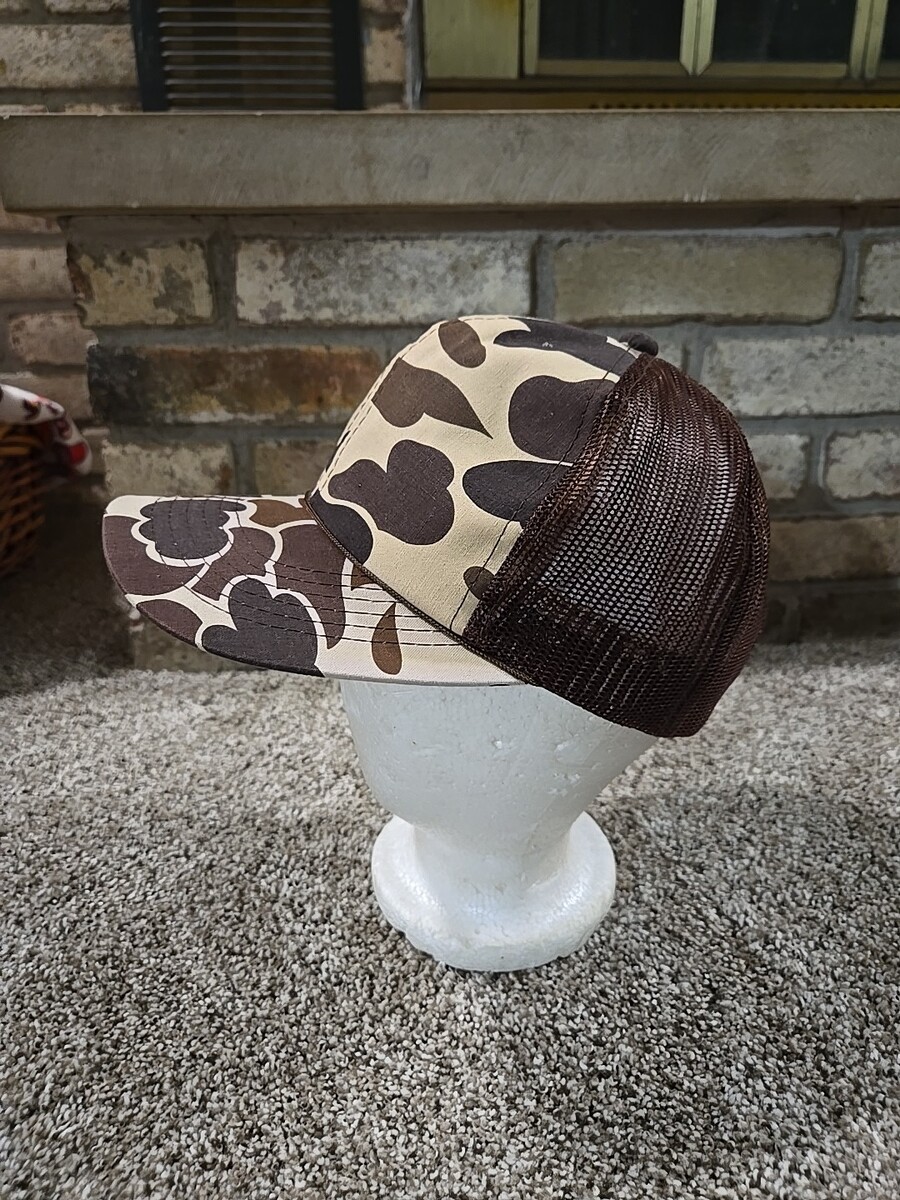 This vintage Duck Camo Hat Cap is a stylish and functional addition to any man's wardrobe. The hat features a classic snap-back design with a mesh back for breathability and adjustable sizing. The camouflage pattern in shades of brown makes it perfect for outdoor activities in all seasons. Made from a blend of polyester, nylon, and cotton, this hat is durable and comfortable for casual wear. Perfect for travel, parties, or everyday wear, this trucker hat is a versatile accessory that showcases a rugged outdoorsy style.