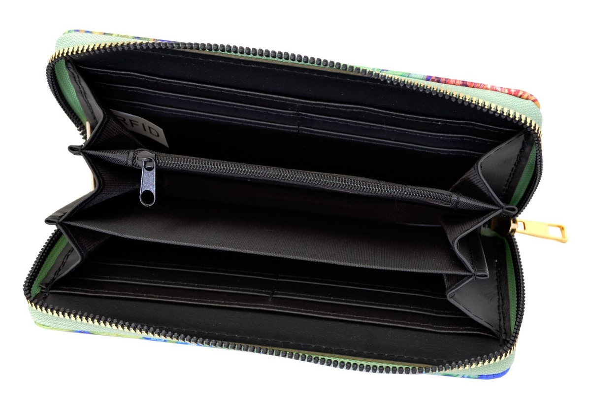 Irises Zipper Wallet nylon zip Blue Flowers Card Capacity RFID