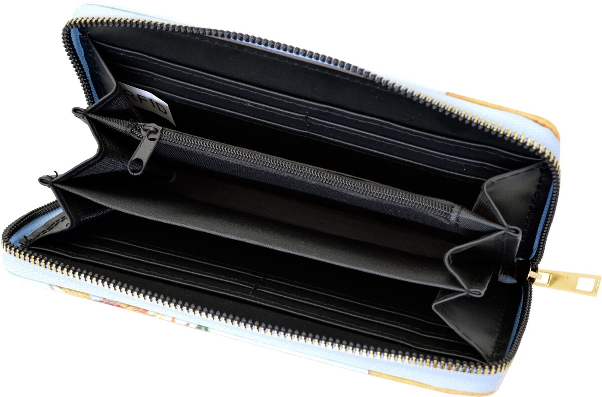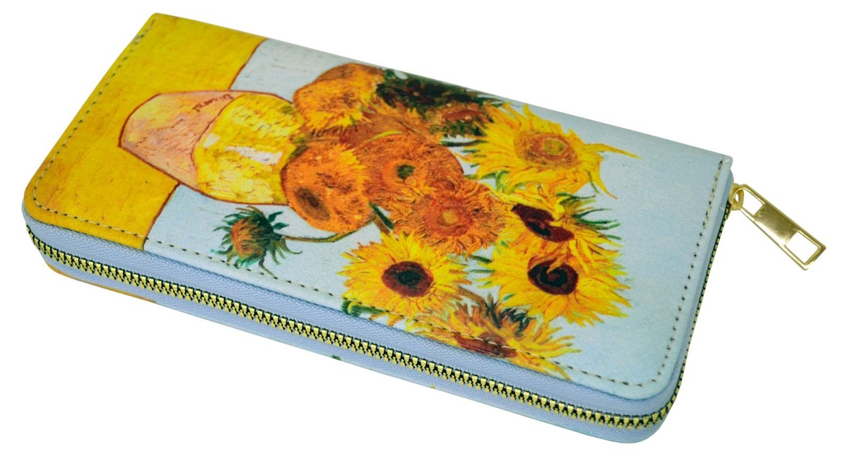 Sunflowers Zipper Wallet nylon zip Yellow Light Blue Flowers Card Capacity RFID