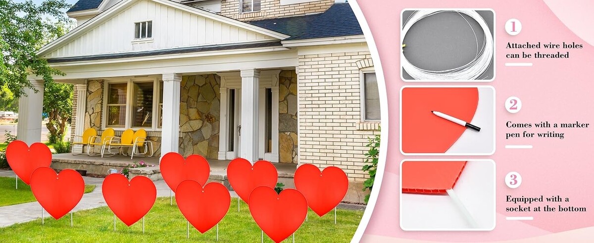 Set of 10 HEART Yard STAKES Valentines Day Cupid Love Outdoor Garden Lawn Decor
