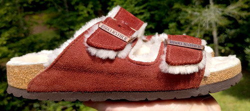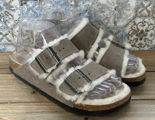Birkenstock Women's Grey Leather Arizona Shearling Sandals!!(37euro/L6)