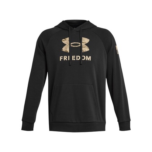 Support those who serve by wearing the Under Armour Freedom Fleece Graphic Long-Sleeve Hoodie for Men. Soft, mid-weight 80% cotton/20% polyester construction features a brushed interior for extra warmth. Highlights of this men's Under Armour Freedom Fleece hoodie include a front kangaroo pocket, ribbed cuffs and bottom hem, and raglan sleeves for an active fit. Machine wash. Imported.