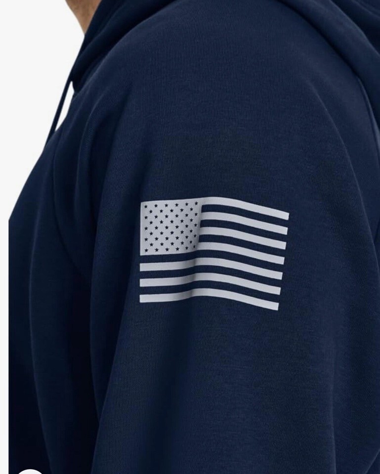 Under Armour Freedom Mens Fleece Blue Flag Graphic LS Blue Hoodie!!(Large)