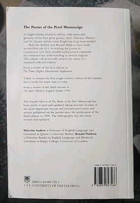 The "Poems of the Pearl Manuscript" is a collection of medieval English poetry including the works "Pearl", "Cleanness", "Patience", and "Gawain and the Green Knight". Edited by Ronald Waldron, this revised edition was published by University of Exeter Press in 2002 as part of the Exeter Medieval Texts and Studies series. Presented in a trade paperback format, this book spans 380 pages and is a valuable addition to anyone interested in medieval, ancient, and classical literature.
