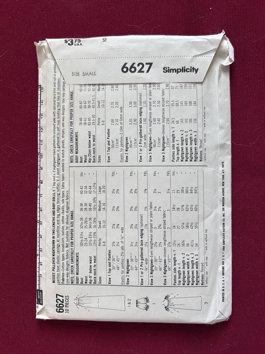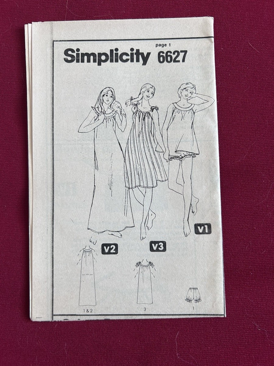 Vtg Simplicity Pattern 6627 Nightgowns Baby Doll Pajamas Uncut FF