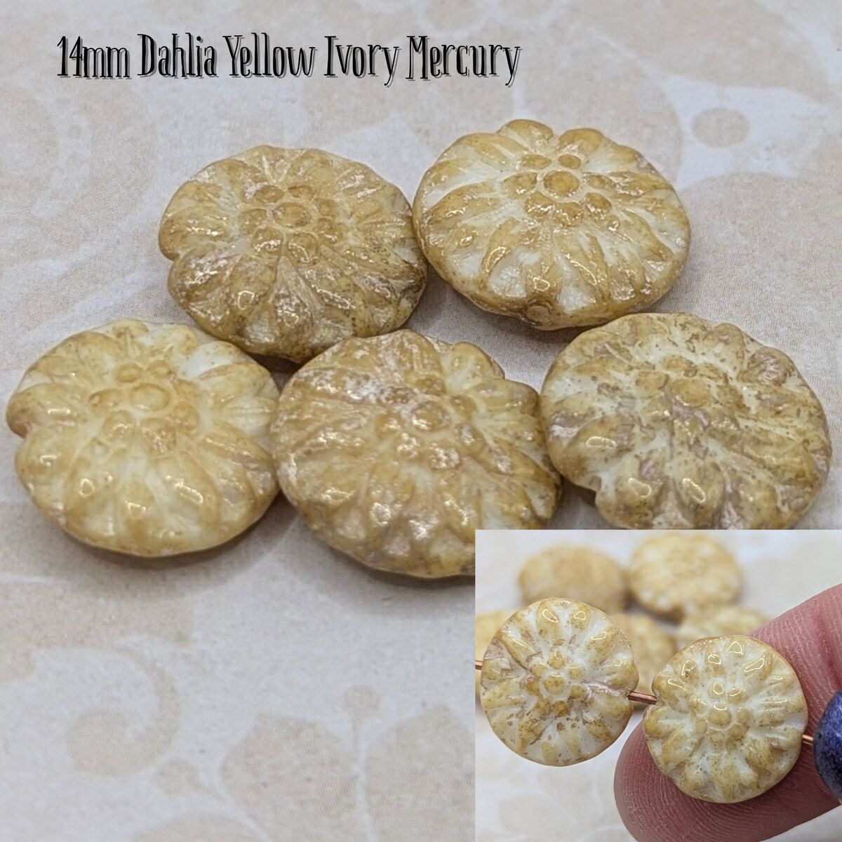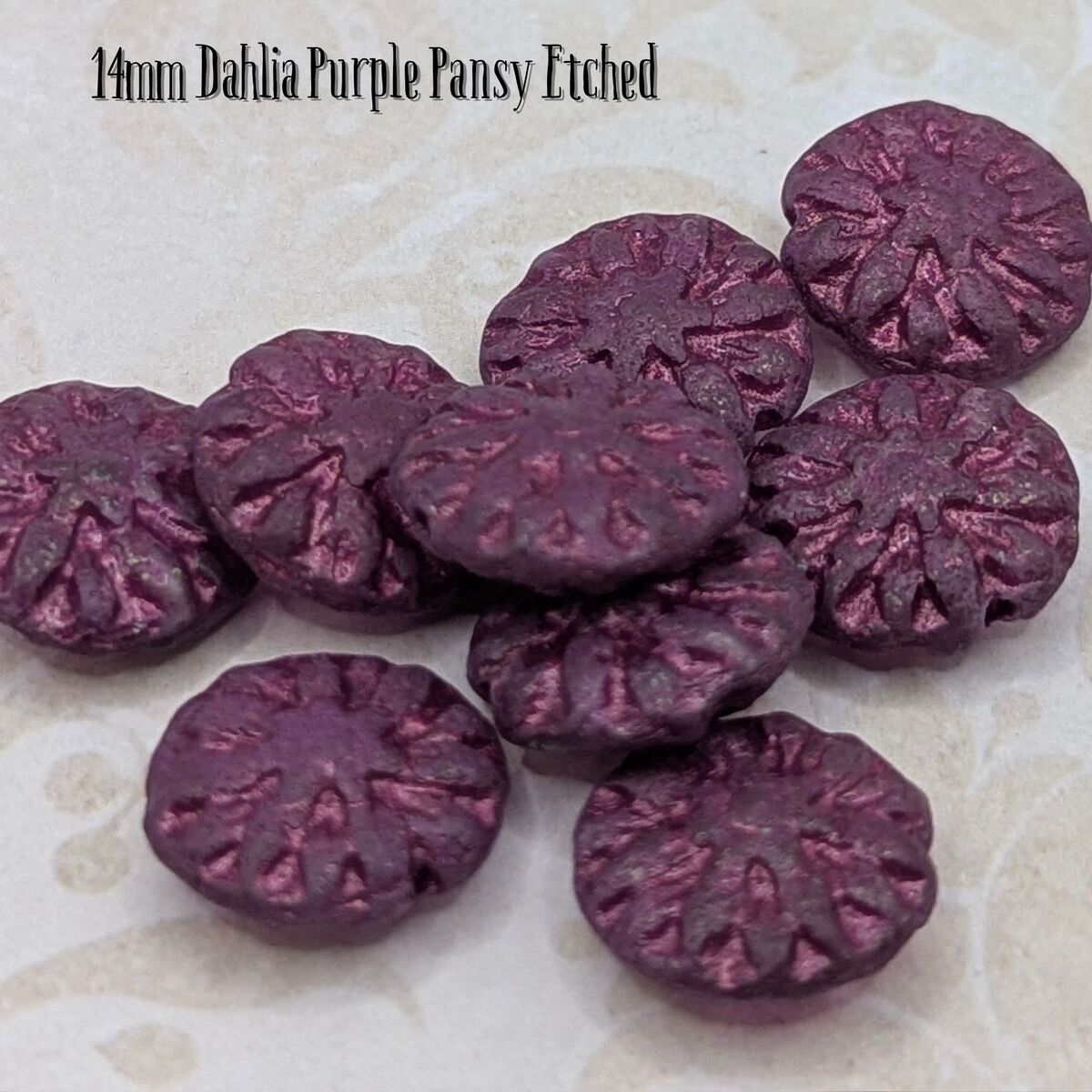 14mm Dahlia Flower Czech Glass Beads (Pansy Collection) – 5 or 10 Beads