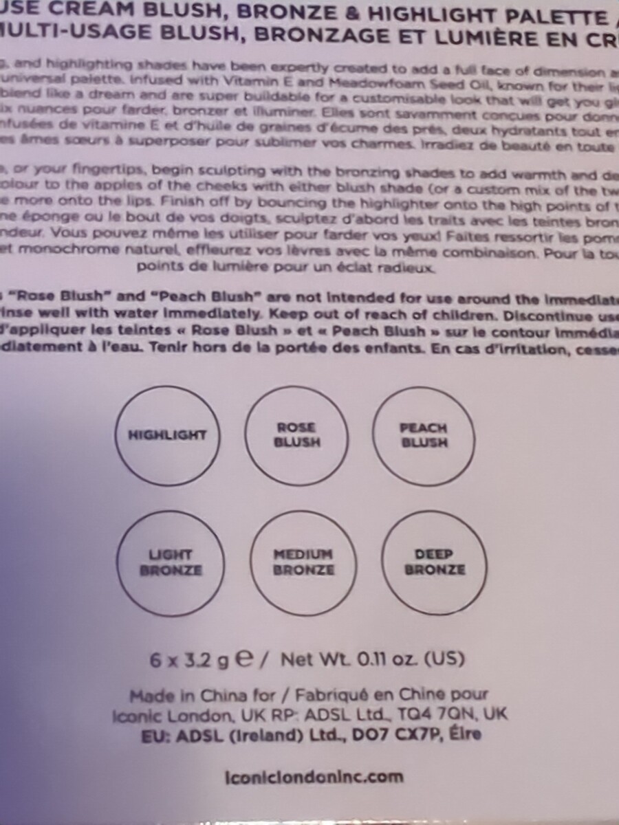 Iconic London Multi-Use Cream Blush, Bronze & Highlight Palette NIB