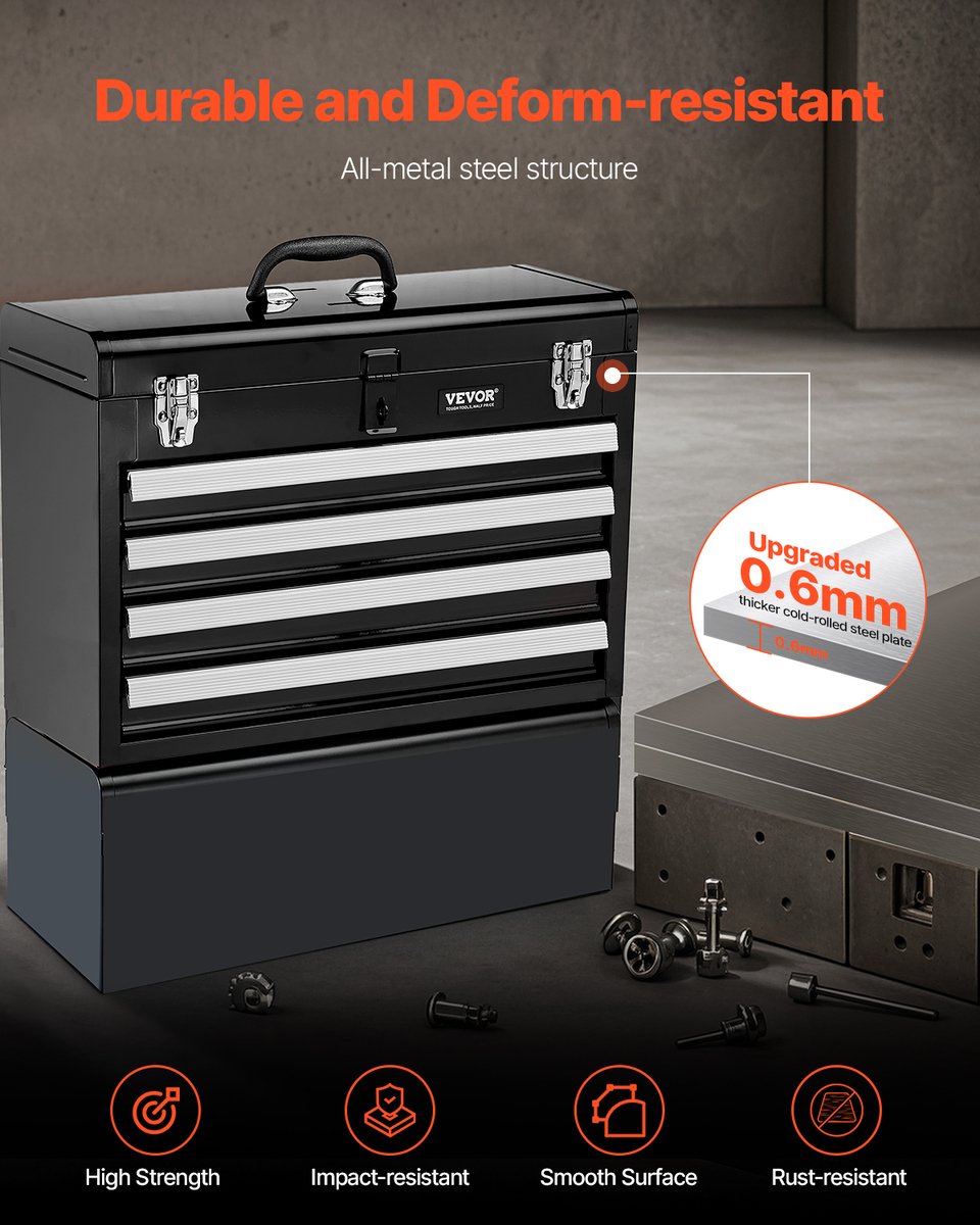VEVOR 20.5" Metal Tool Box 4 Drawers EVA Liners Ball Bearing Lock Powder Coat
