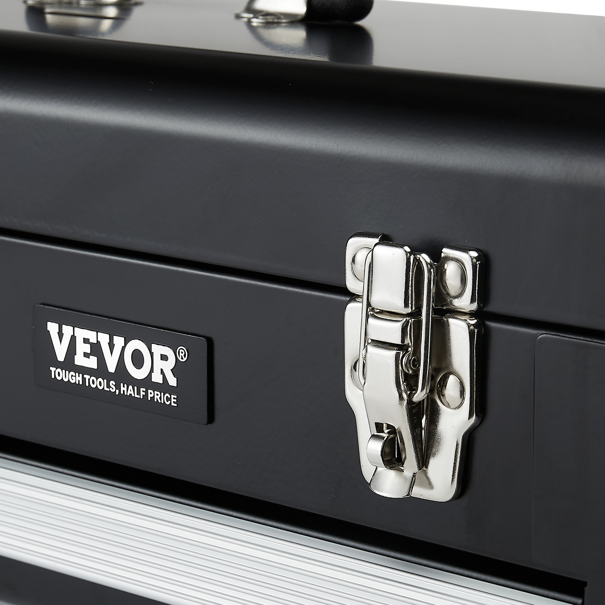 Auto-locking for Enhanced Security: The steel tool box features an auto-locking system. Simply push the drawers in and close the top lid to lock it, avoiding accidental sliding and securing your tools. The heavy-duty metal latch keeps the top securely in place, while an additional lock hole allows you to add a lock for extra security, ensuring your valuable items are secure. (Note: To access the drawers, unlock by opening the top lid first.)