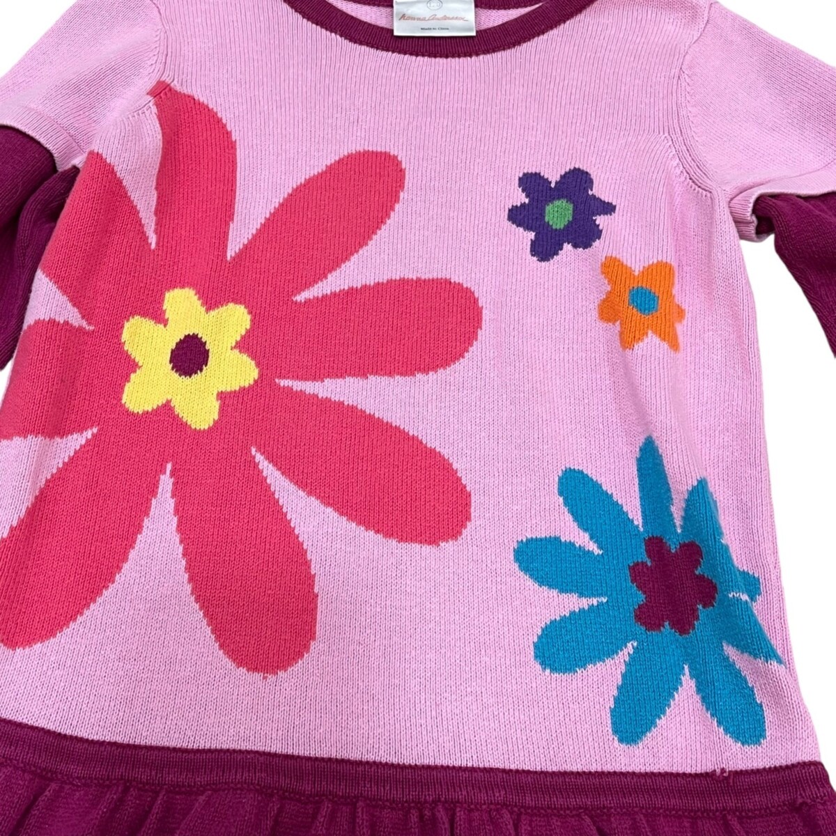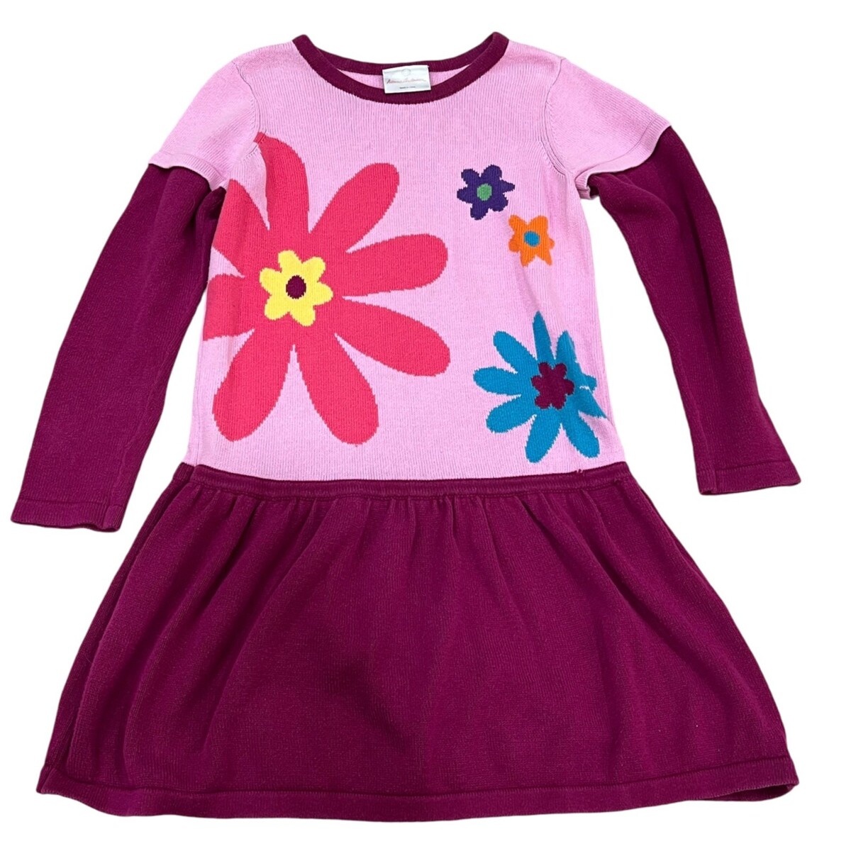 Hanna Andersson Girls Long Sleeve Floral Sweater Dress Size 4 Pink & Purple