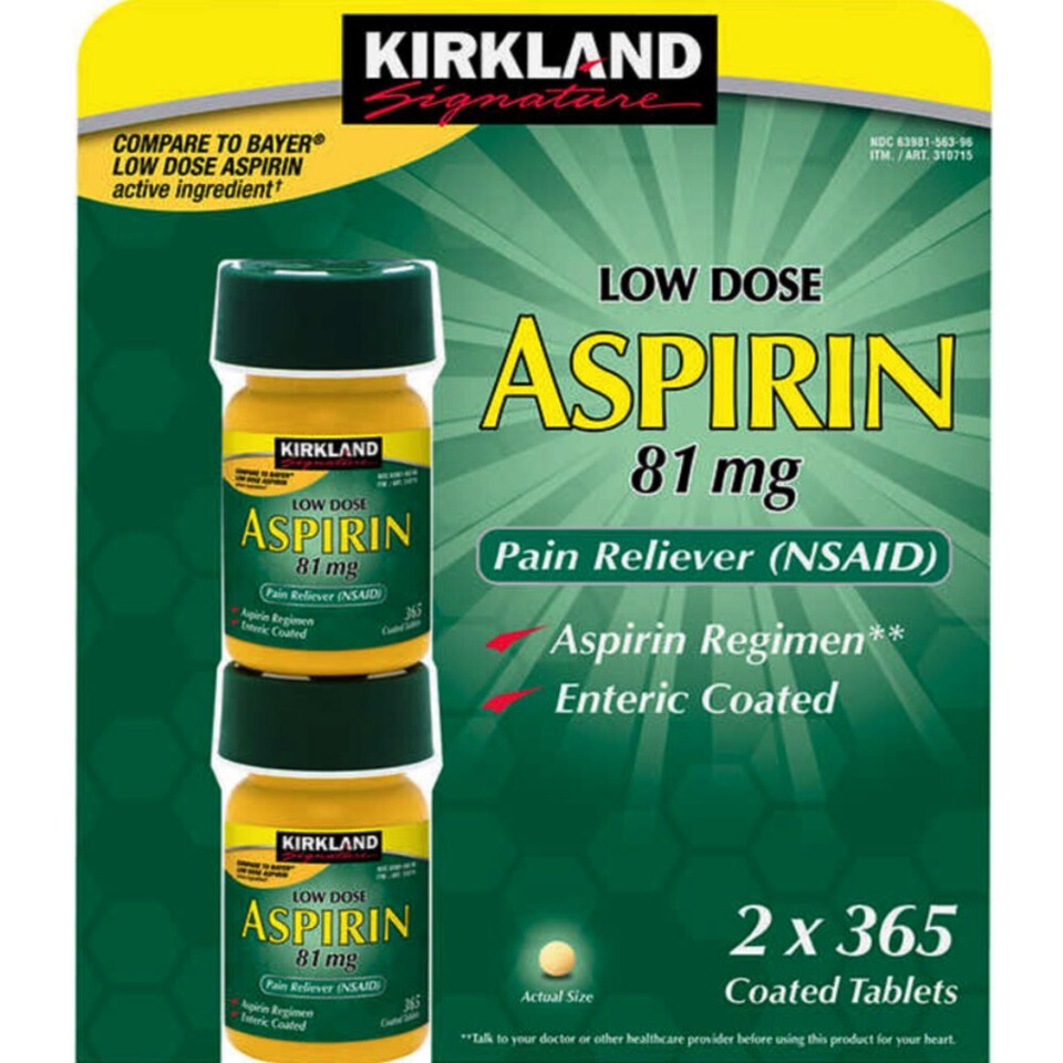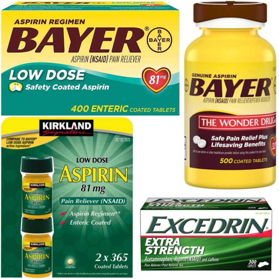 ??? ????, ???? ???? (Bayer Aspirin Low Dose 81mg, Bayer Aspirin 325mg, Bayer Aspirin 500mg, Kirkland Signature Low Dose 81mg) ???? ???? ?????????.