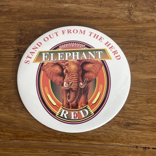 Vintage Elephant Stand Out From the Herd Red Beer Pinback Button Flare KG