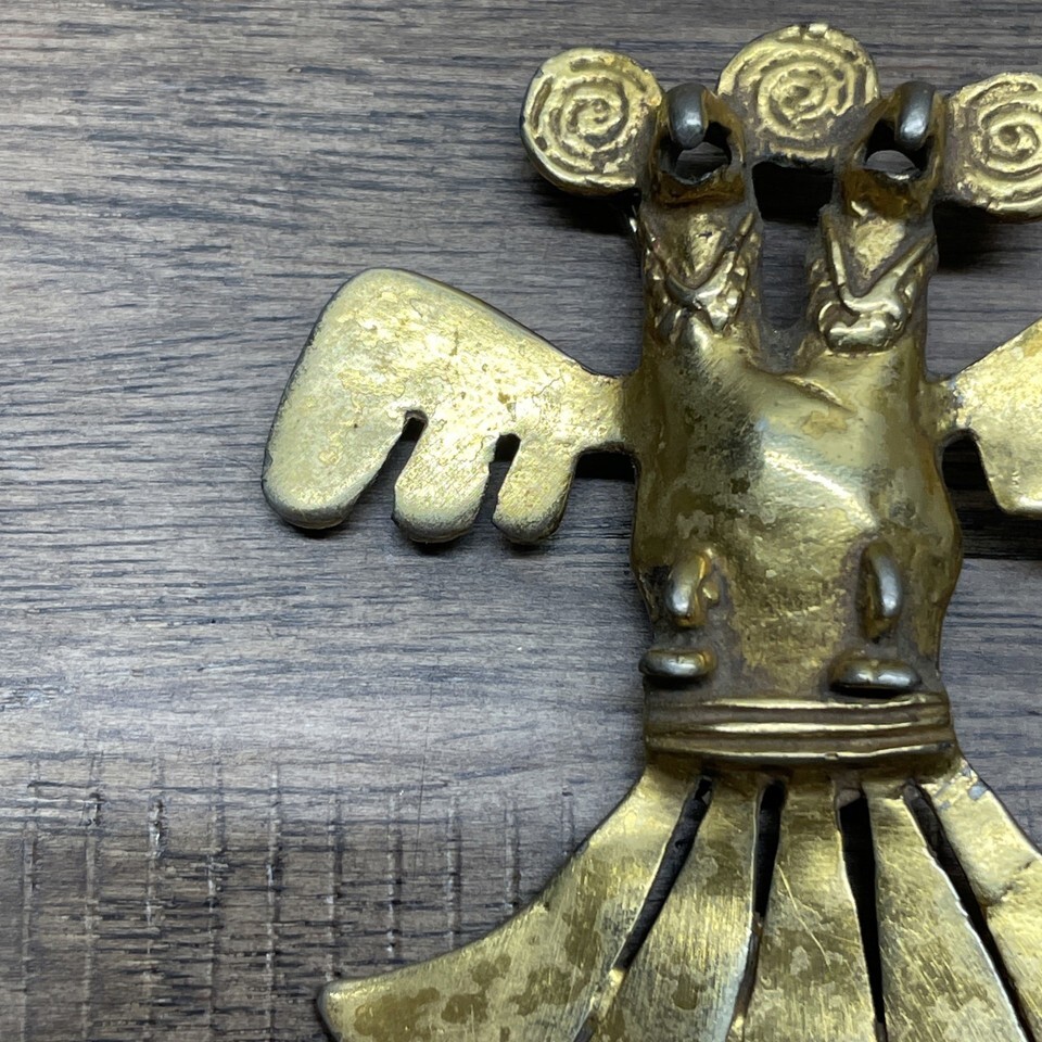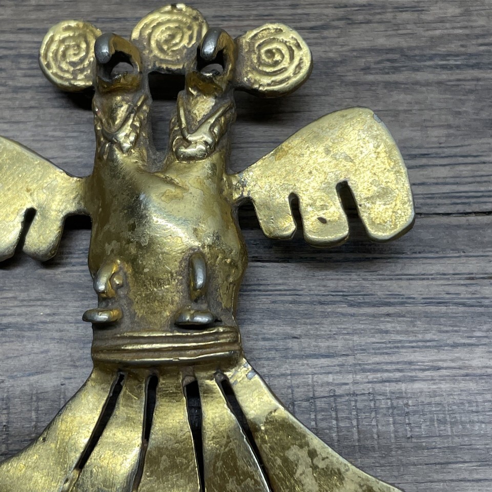Vintage Necklace Primitive Trial Bird Two Headed Pendant Charm Estate Find KG
