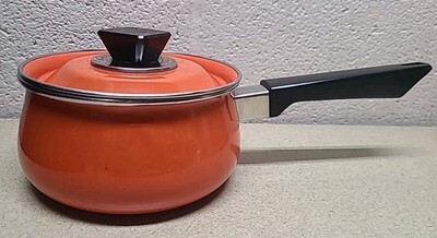 Retro Enamel Ware 2 Quart Saucepan Bright Orange Pot & Lid HEAVY