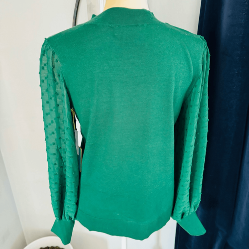 CeCe Clip Dot Sleeve Sweater, Holiday Christmas Party Top, Green, Size Small NWT