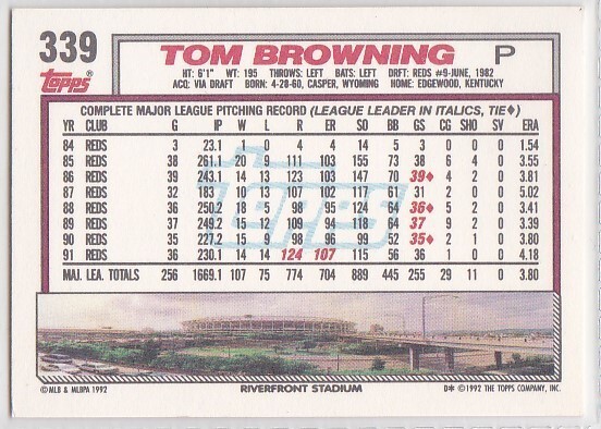 M) 1992 Topps Baseball Trading Card - Tom Browning #339
