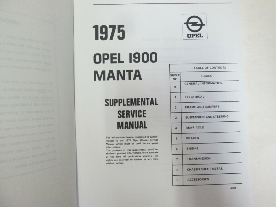 1975 Buick Opel 1900 Manta Service Repair Shop Manual Supplement FACTORY OEM