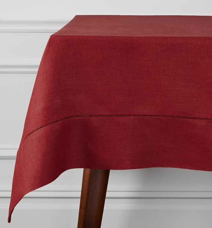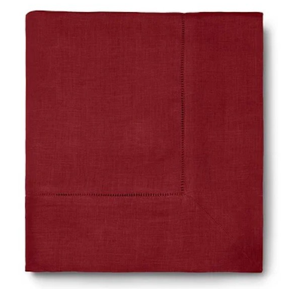 Sferra Festival Cinnabar (Red) Square Tablecloth 54x54" Hemstitched Linen New