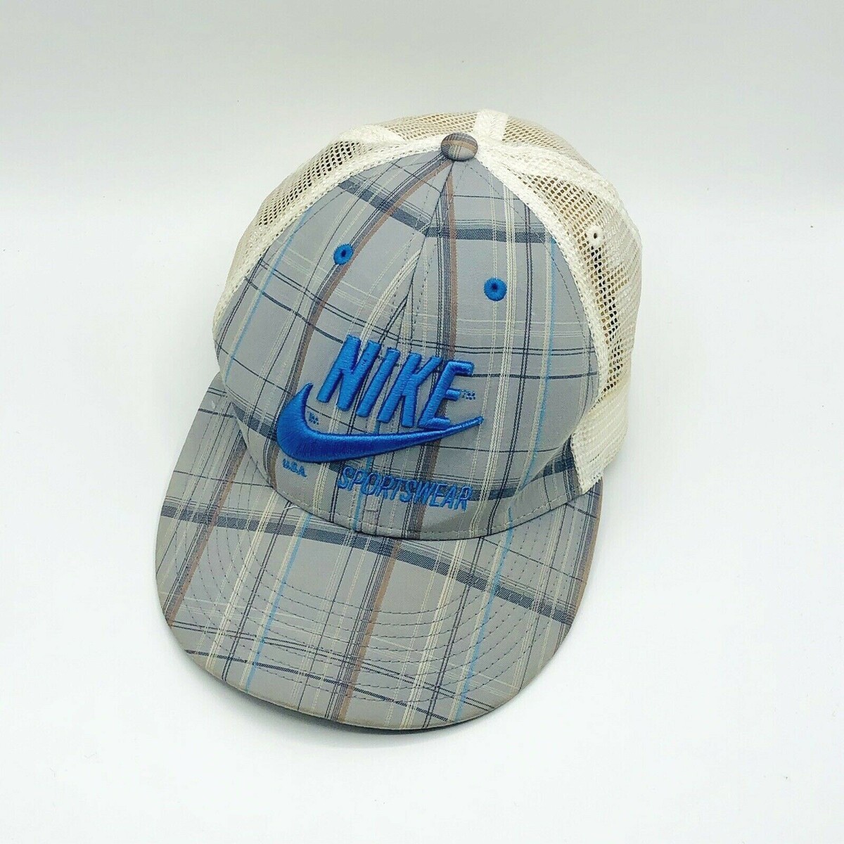 Nike Sportswear USA Gray Plaid Embroidered Snapback Cap Hat Mesh Back