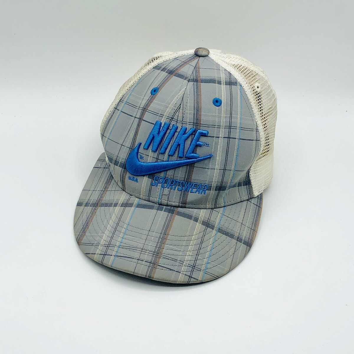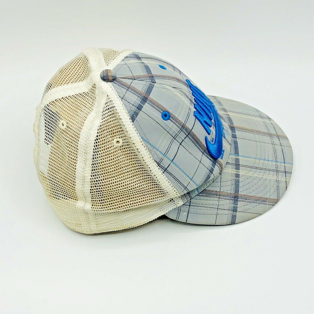 Nike Sportswear Gray Blue Plaid Embroidered Snapback Hat with White Mesh Back