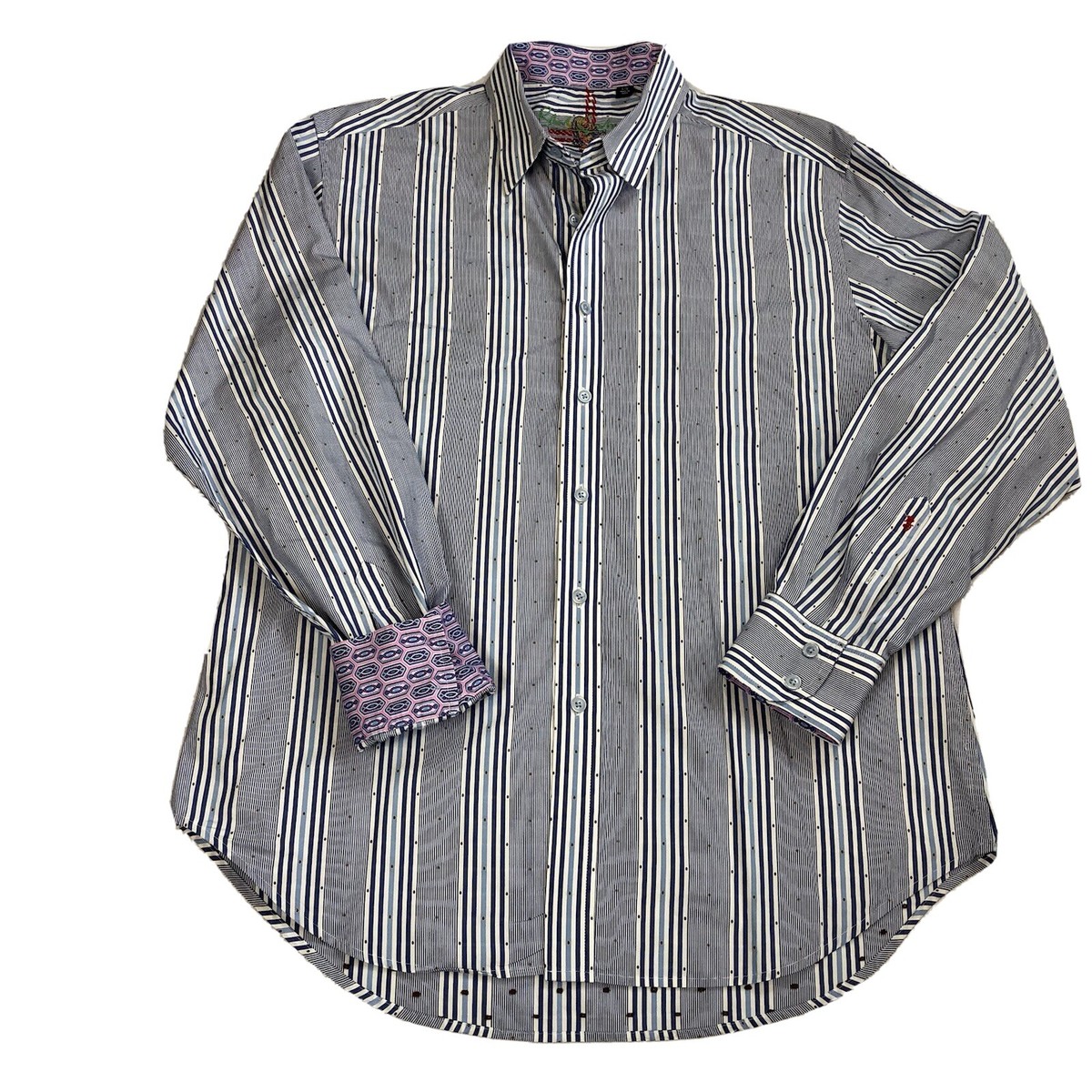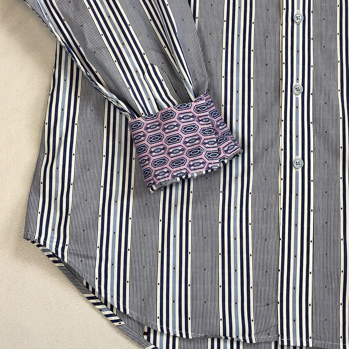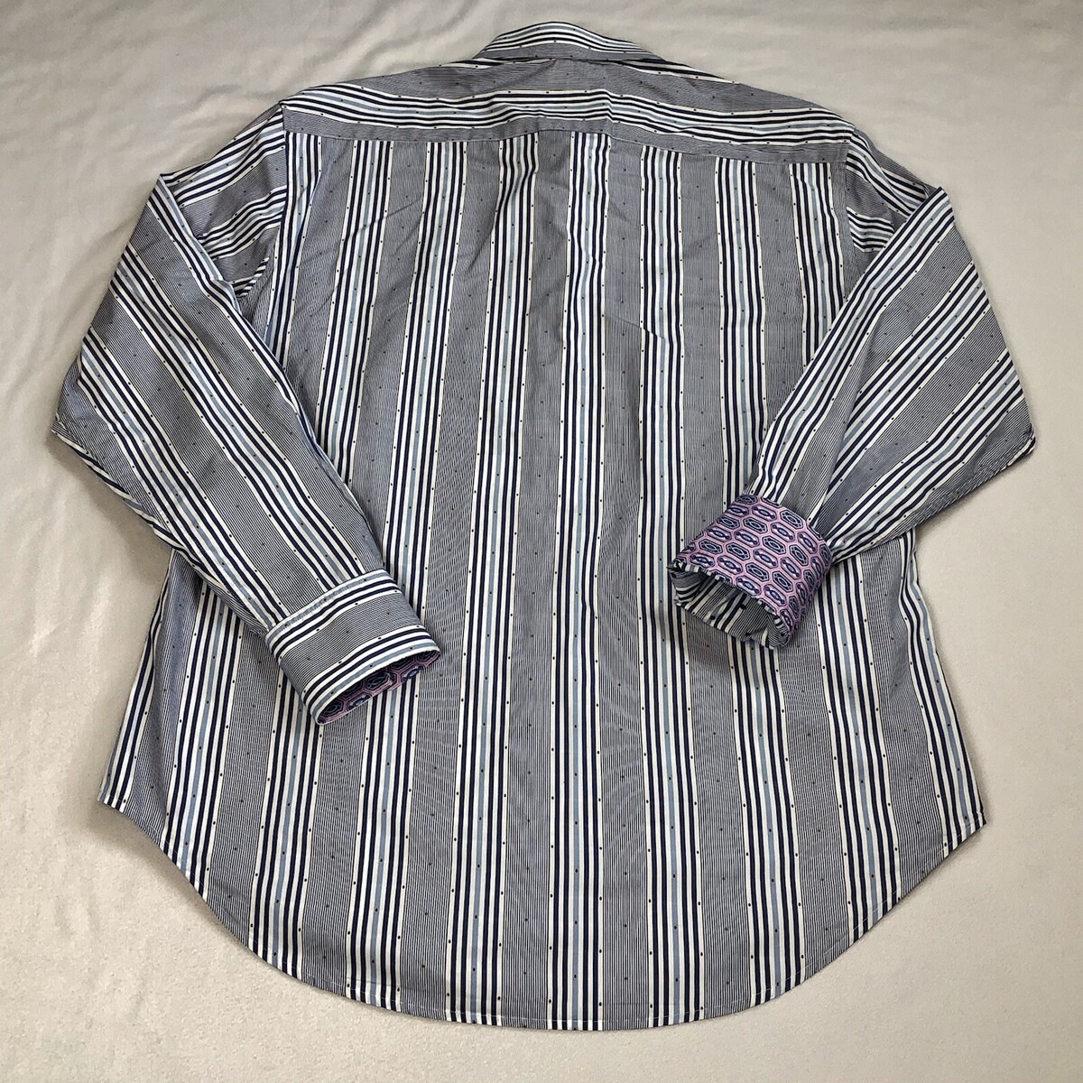 Robert Graham Striped Long Sleeve Button Front Shirt Flip Cuffs Men's Size Large