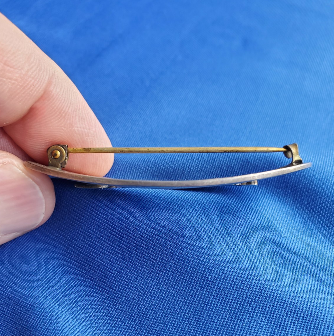 Art Deco Guilloche Enamel Brooch 925 Sterling Silver Vintage Hand made Pin