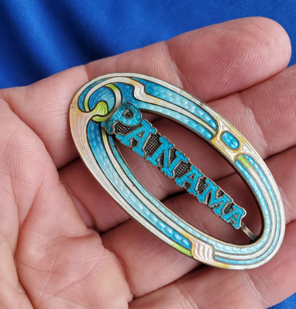 DESIGNER STERLING SILVER 925 HAND PAINTED ENAMEL DECO PIN.