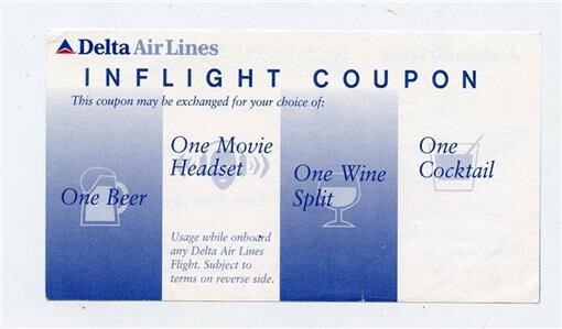 EXPIRED AND Unusable. For collecting only.An unused Delta Airlines Movie Headset Wine Split Cocktail Inflight Coupon Expired Unusable. Numbered and dated 2000