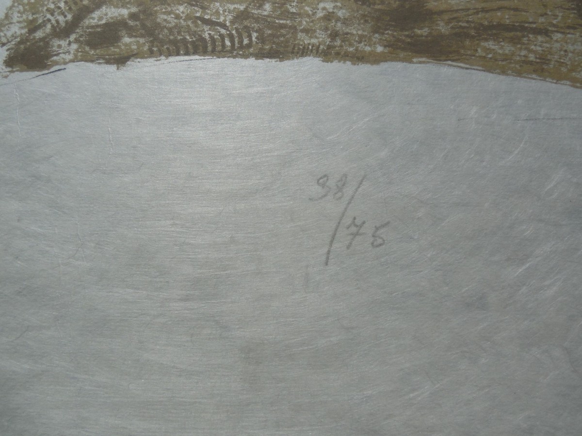 The product is a signed and numbered print titled "Affiche pour L'Exposition Georges Braque Rene Char" by artist Georges Braque. Created in 1963 in France, the lithograph features a portrait orientation and measures 21 inches in both height and width. The Surrealist work reflects the artist's signature style of Cubism and Modernism, making it a unique and authentic piece from the post-war period. This original print is a valuable addition to any art collection. This is a very beautiful piece on specialized Japon paper. I will pay for the packing, shipping and insurance. Thank you!