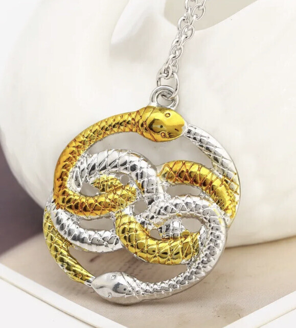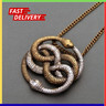Never Ending Story Necklace 20” Chain Ouroboros Nordic Talisman Two Snake Auryn