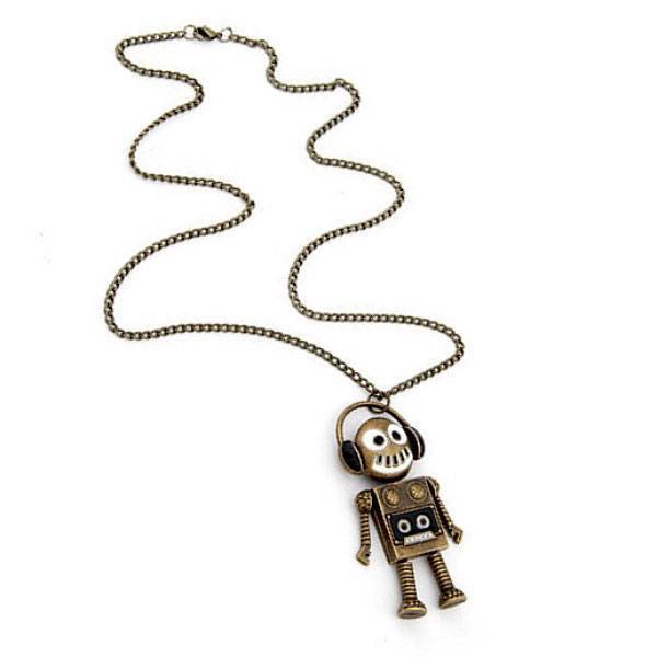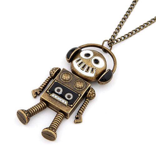 DJ ROBOT CHARM NECKLACE 3" Pendant 26" Chain Headphones Bronze Color Metal NEW