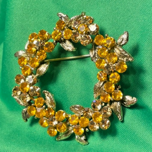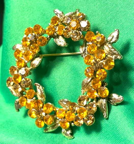 Karu Arke Inc Orange Yellow Amber Rhinestone Brooch Pin