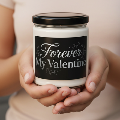 Celebrate love with this elegant 9oz scented soy candle featuring a timeless “Forever My Valentine” design. Made with natural soy wax, it provides a clean, long-lasting burn that creates a warm and romantic atmosphere. Perfect as a Valentine’s Day gift, anniversary surprise, or thoughtful keepsake for someone special.
