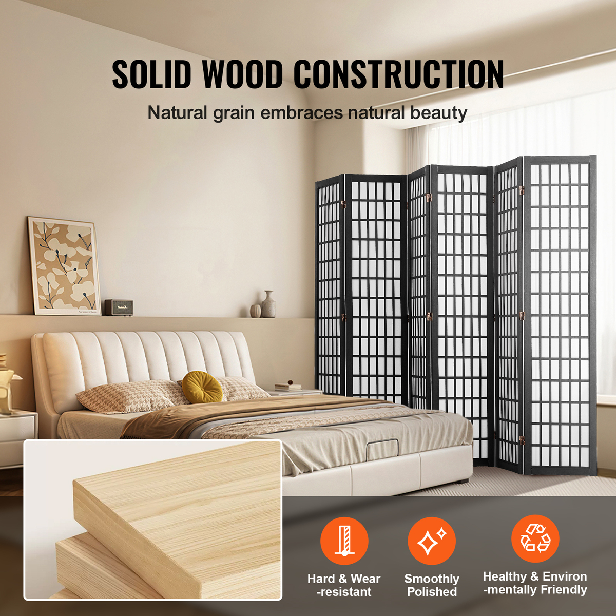 Effortless Setup and Mobility: The room divider screen crafted from solid wood - no assembly required! Just grab it and place it wherever you need a little privacy. It's a simple way to carve out your own space without the hassle of renovations or drilling.