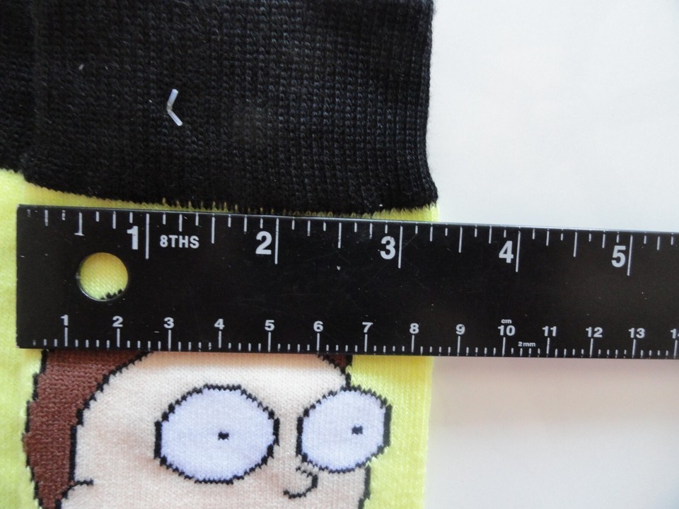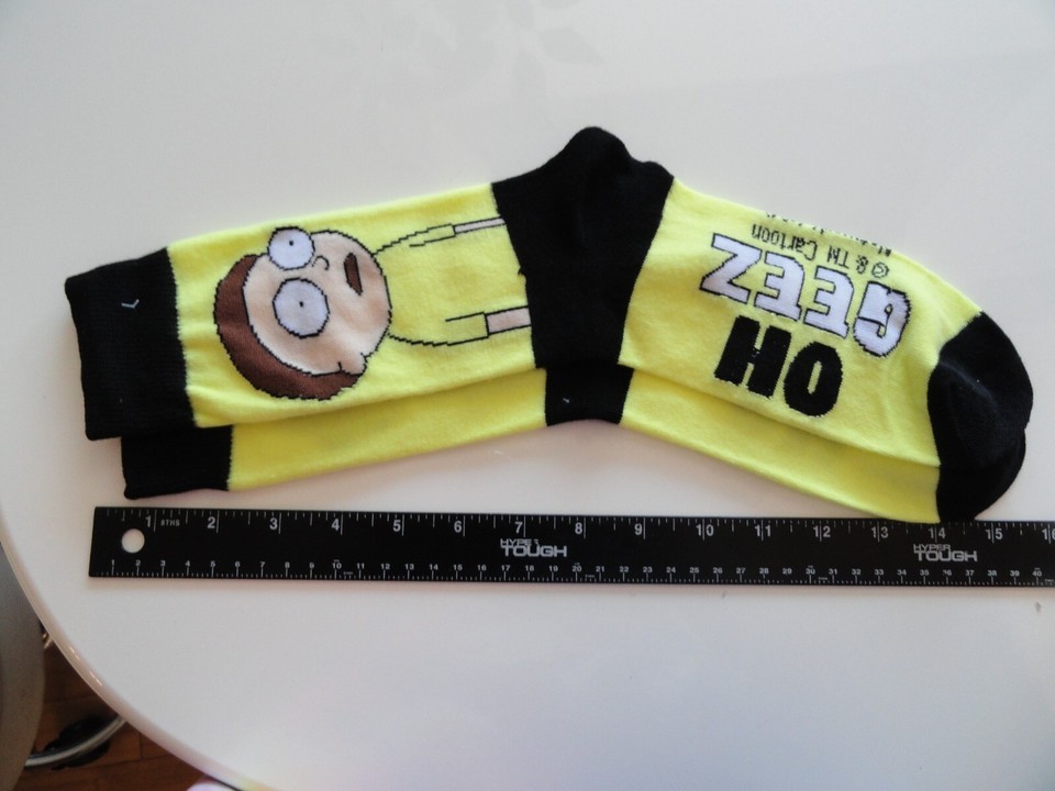NEW 1 PAIR RICK AND MORTY OH GEEZ SOCKS YELLOW AND BLACK SHOE SIZE 6-12