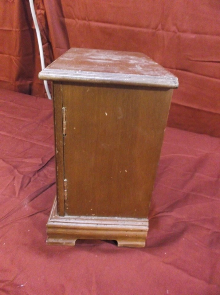 This Jewelry Box is in overall Very Good Condition. It does show very slight signs of wear such as scuffs marks and scratches. These are very few of these and they are hard to see unless closely inspecting the box.