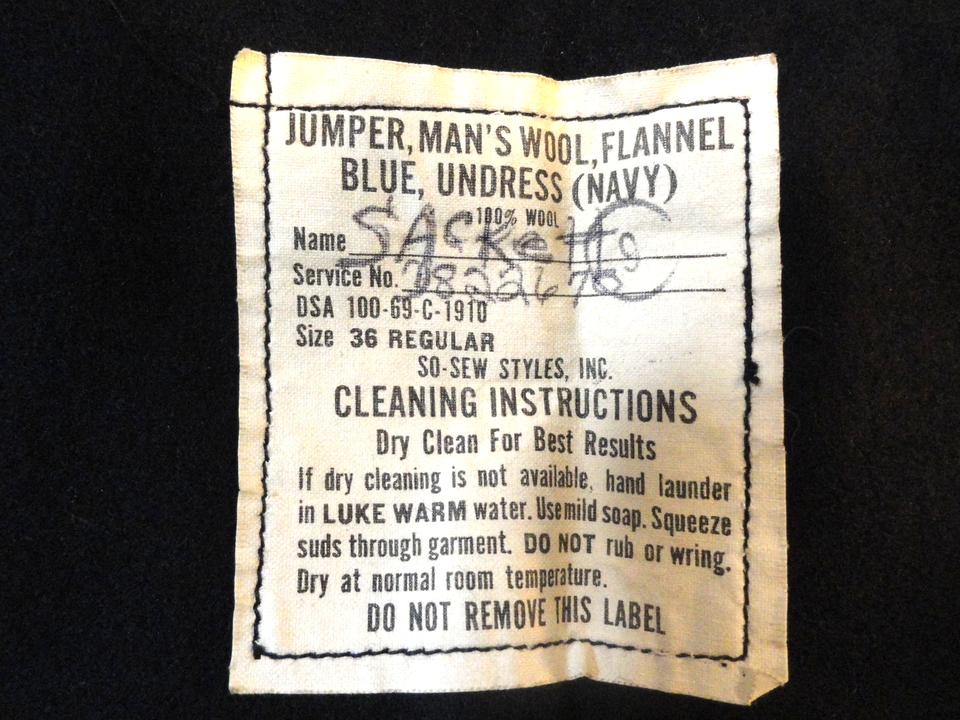 1969 VIETNAM WAR USN SAILOR BLACK CRACKER JACK UNIFORM JUMPER BLOUSE SHIRT 36R