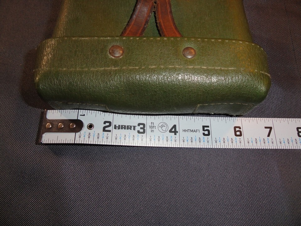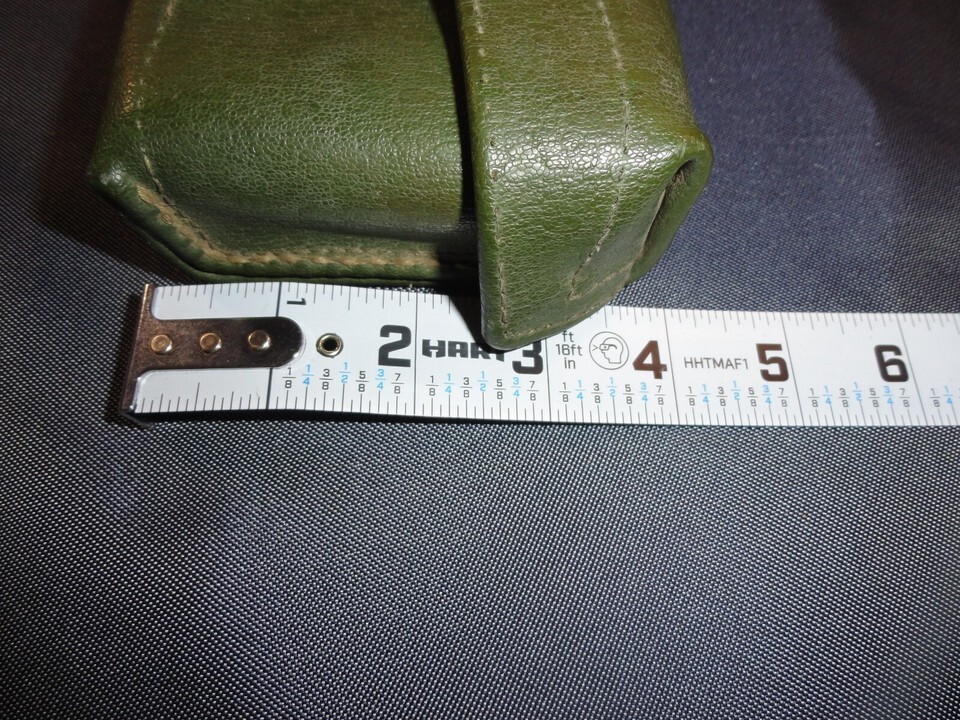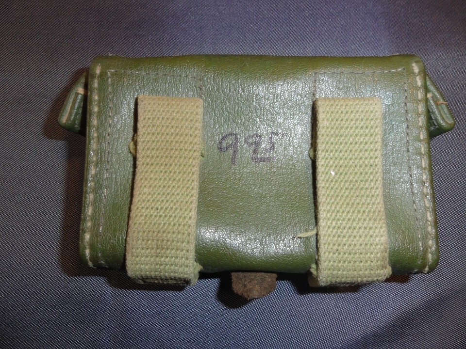 There are a few variations of this pouch to the long molded leather rectangular to the rounded body type. Some had belt loops that were long and hung above the top of the pouch. Like most ChiCom gear sent to Hanoi, some had markings and some did not.